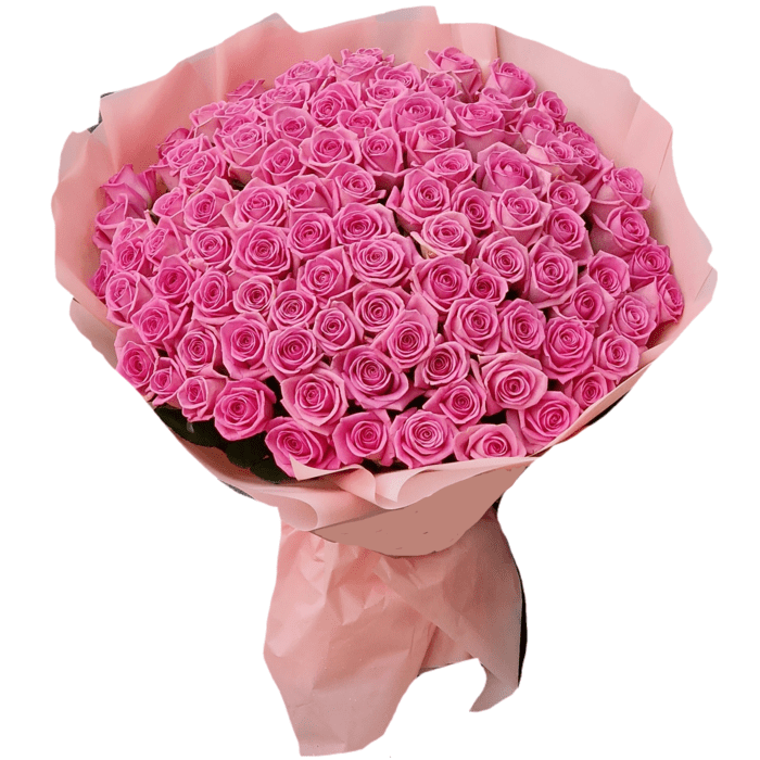 Склад: 101 рожева троянда, пакувальний папір, стрічка.