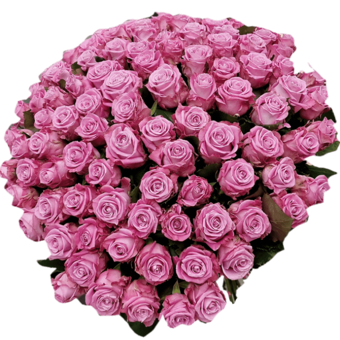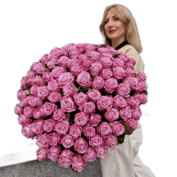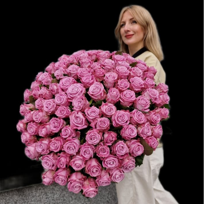 Склад: 101 рожева троянда, пакувальний папір, стрічка.