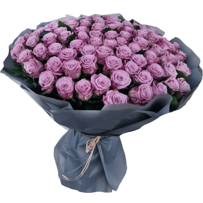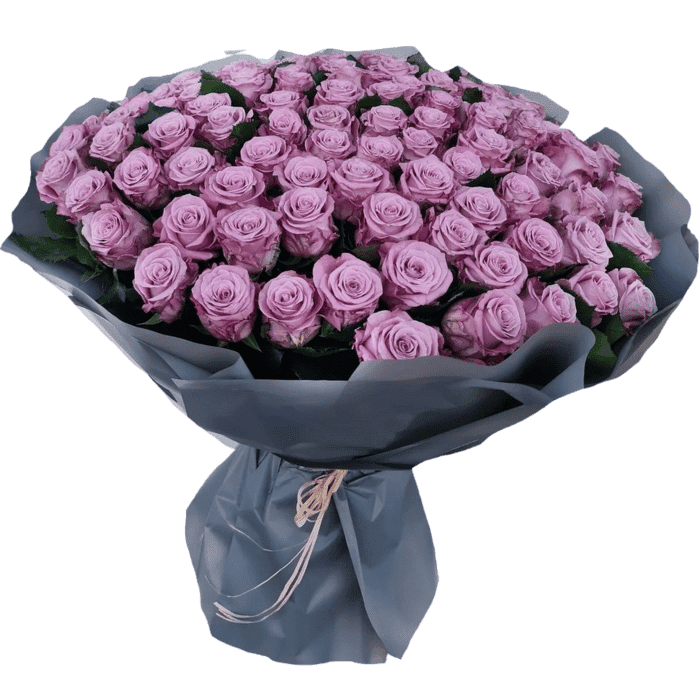 Склад: 101 бузкова троянда Cool Water, пакувальний папір, стрічка.