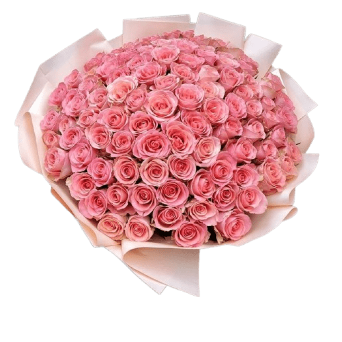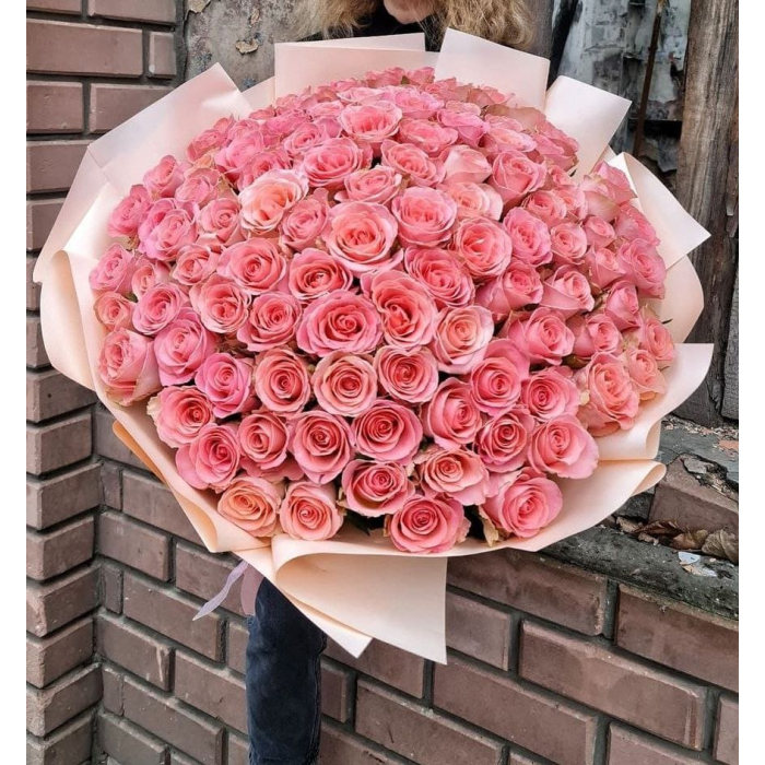 Склад: 101 рожева троянда, пакувальний папір, стрічка.