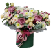 Склад: хризантеми різного сорту, кущова троянда, евкаліпт, картонний бокс. Склад композиції може бути незначно змінений в залежності від сезонності та наявності квітів. Але форма та кольорова гама залишиться незмінена.Пе...