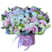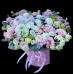 Склад: жоржини, кущова троянда, хризантеми, еустома, евкаліпт, картонний бокс. Склад композиції може бути незначно змінений в залежності від сезонності та наявності квітів. Але форма та кольорова гама залишиться нез...