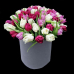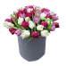 Склад: фіолетові, бордові та білі тюльпани 35 шт., картонний тубус.