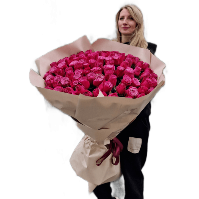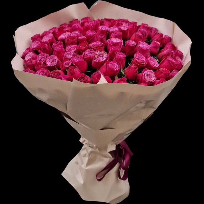 Описание Букет 101 роза Фуксия