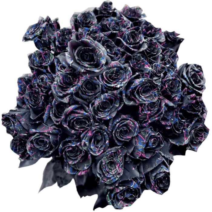 Состав: 51 черная роза, упаковочная бумага, лента.