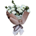 Состав: белые диантусы 15 шт., эвкалипт, упаковочная бумага, лента.