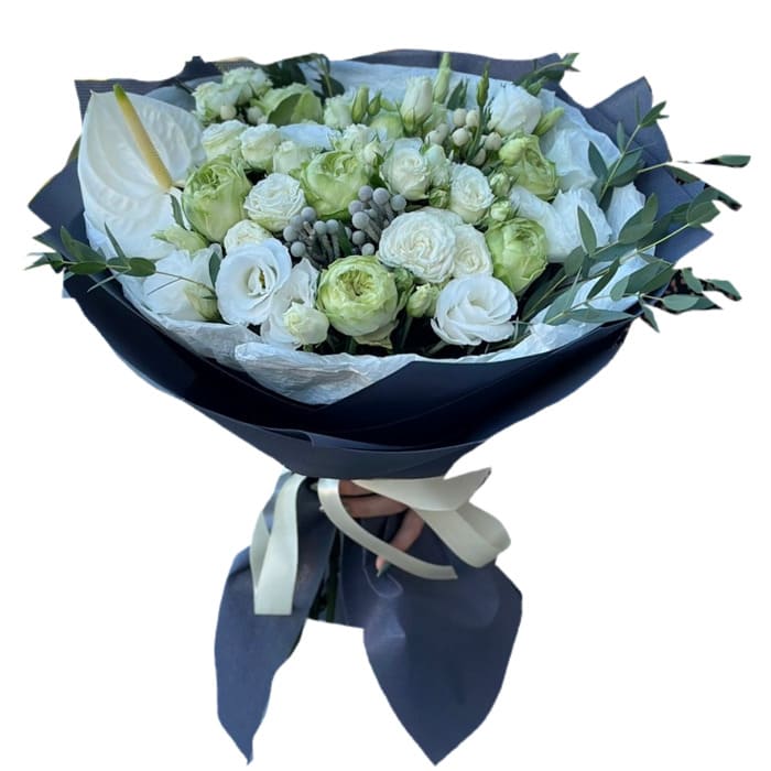 Состав букета может быть незначительно изменен в зависимости от сезонности и цветов. Но форма и цветовая гамма остается неизменной.