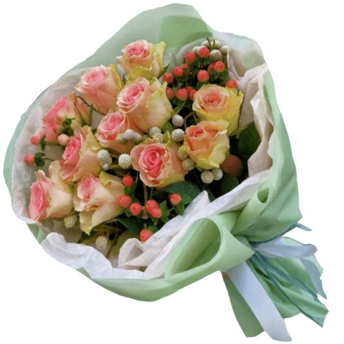 Состав букета может быть незначительно изменен в зависимости от сезонности и цветов. Но форма и цветовая гамма остается неизменной.