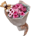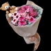 Букет из хризантем разных сортов в розовых тонах, с добавлением мягкой игрушки.