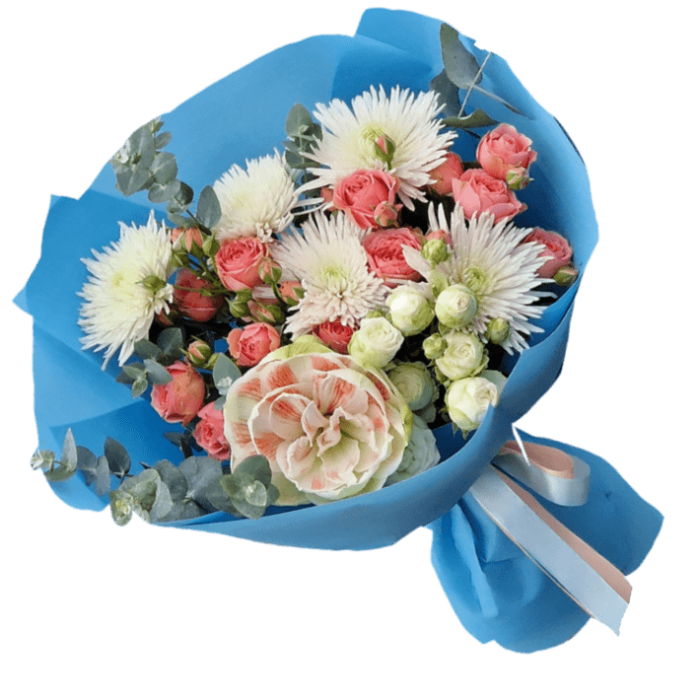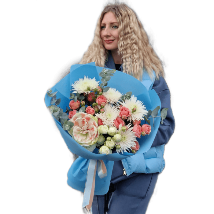 Состав букета может быть незначительно изменен в зависимости от сезонности и цветов. Но форма и цветовая гамма остается неизменной.