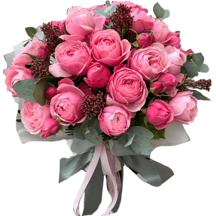 Состав букета может быть незначительно изменен в зависимости от сезонности и наличия цветов. Но форма и цветовая гамма остается неизмененной.