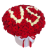 Состав: 101 роза с надписью (красные и белые), картонный бокс, лента.