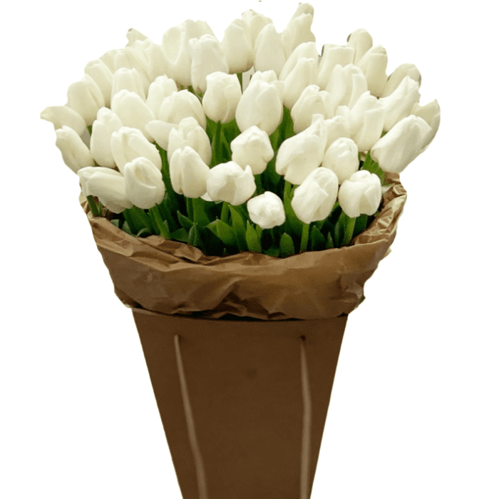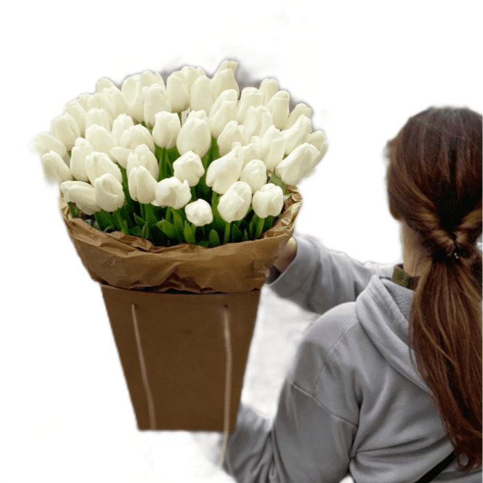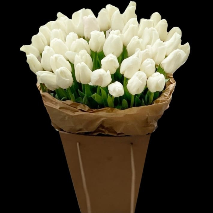Состав: белые тюльпаны 51 шт., картонная коробка.