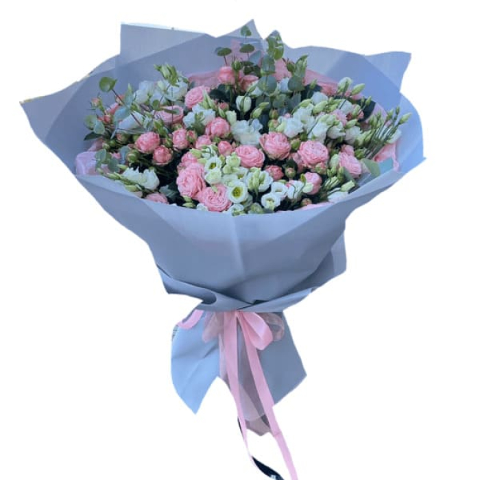 Букет з еустомою, кущовою трояндою та евкаліптом.Склад букету може бути незначно змінений в залежності від сезонності та наявності квітів. Але форма та кольорова гамма залишиться незмінена.Перед відправкою надсилаємо фот...