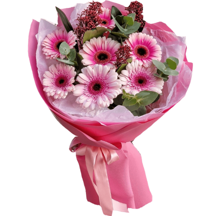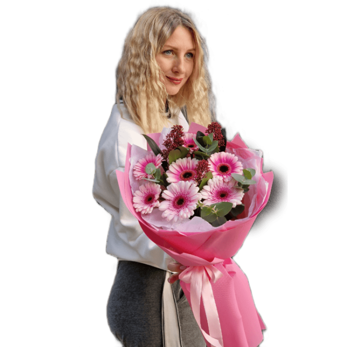Опис Букет з герберами та скіммією