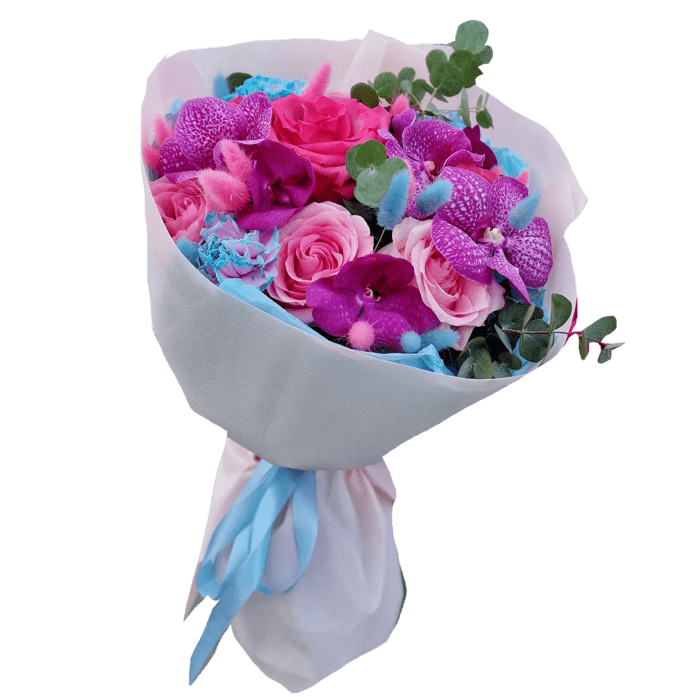 Основні характеристики Букет з піоновидними трояндами та орхідеями