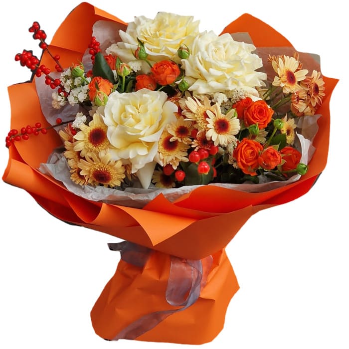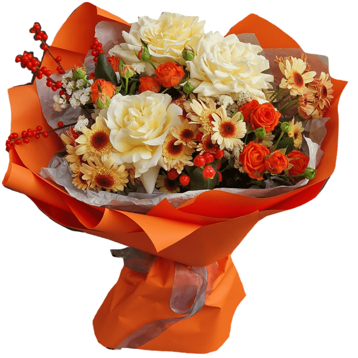 Склад букету може бути незначно змінений в залежності від сезонності та наявності квітів. Але форма та кольорова гамма залишиться незмінена.