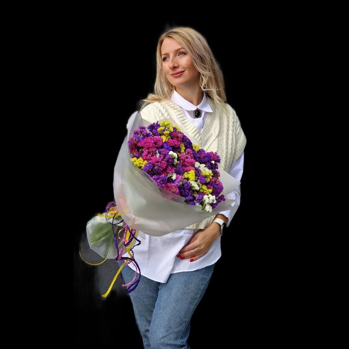 Склад букету може бути незначно змінений в залежності від сезонності та наявності квітів. Але форма та кольорова гамма залишиться незмінена.